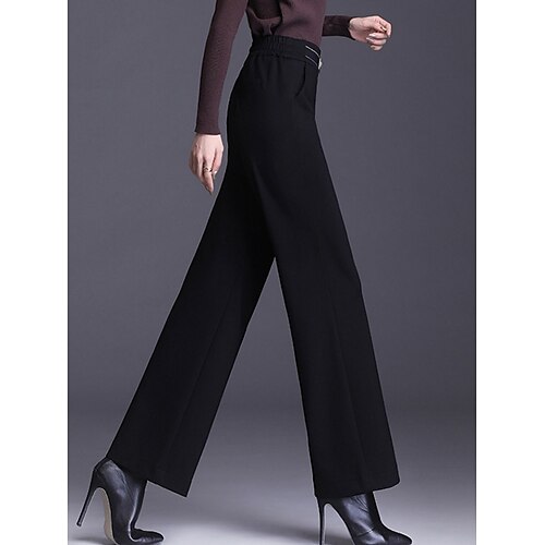 Per donna Gamba larga Pantaloni Eleganti Moda Streetwear Lunghezza intera Naturale Semplice Elastico in vita Confortevole Formale Lavoro Affari Nero Bianco Autunno Vestibilità regolare