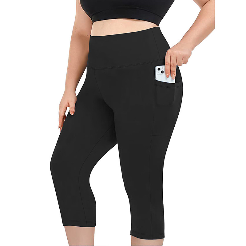 Women's pilates leggings Capri Leggings sport pants Pocket Lightweight Pilates Gym Running Capri Leggings Solid Color Dark Grey Black Army Green Plus Size Sports Activewear Micro-elastic