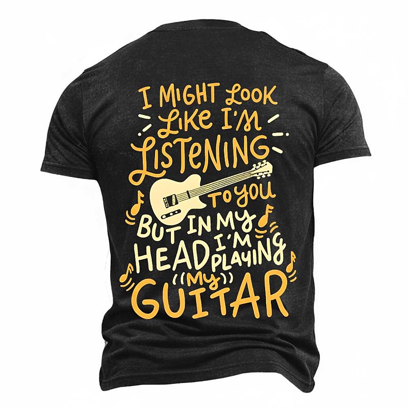 I Might Look Like I Am Listening To You But In My Head I Am Playing My Guitar Funny Guitarist T Shirt For Men Musician Graphic Tee Olive Green Music Lover Top Clothing Apparel S M L XL XXL XXXL