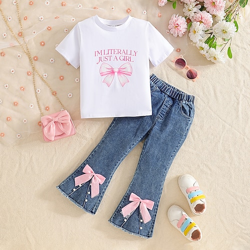 Mädchen 3D Buchstabe T-Shirt Hose Kurzarm Sommer Täglich Lässig Kleinkind 1-5 Jahre Rundhalsausschnitt Outdoor Urlaub Lässiger Schnitt