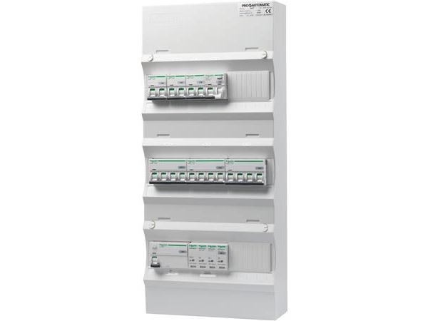 PRO-AUTOMATIC Ryhmäpaneeli valmiiksi asennettuna UG18 Valkoinen, HPFI 40A 30mA, 3xC10 1P+N, 1xC10/30mA 1P+N, 2xC13 3P+N, 1xC16 3P+N, 1xTransientti