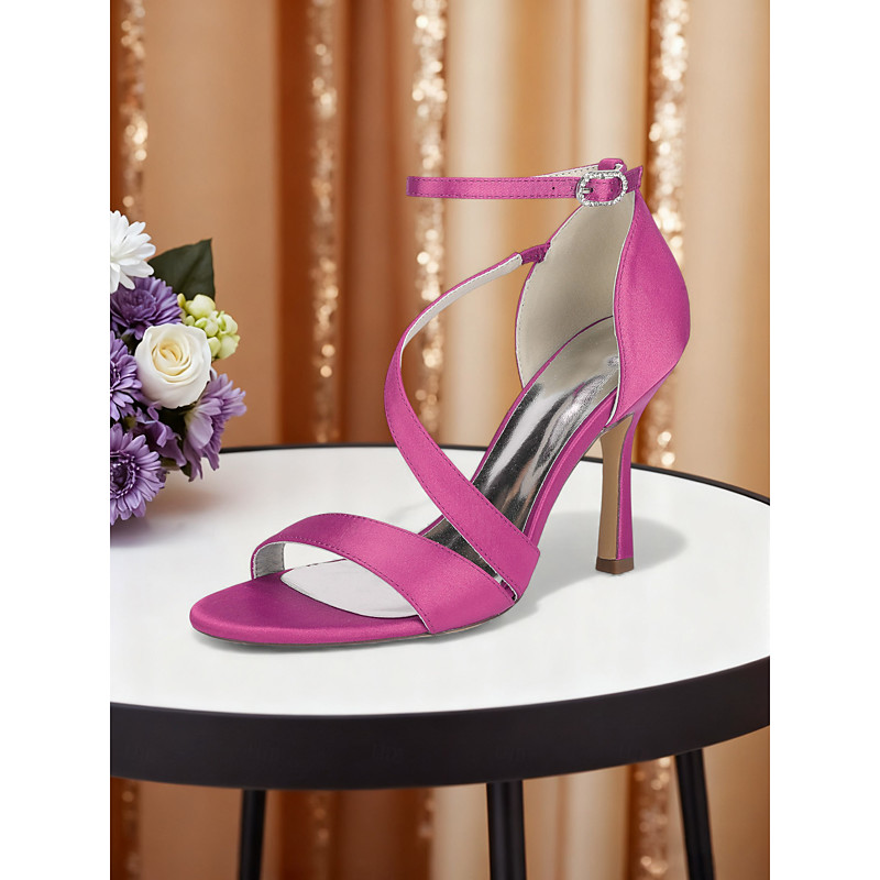 Women's Purple Satin Bridal Heels with Pearl Ankle Strap and Bow, Elegant Open-Toe Wedding Sandals for Brides, Luxury High-Heel Ceremony Shoes