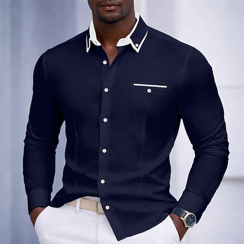 Per uomo Camicia Camicia elegante Camicia button-down Blocco di colori Quotidiano Affari Blu chiaro Nero Bianco Rosa Manica Lunga Collo ripiegato Tutte le stagioni Abbigliamento Patchwork