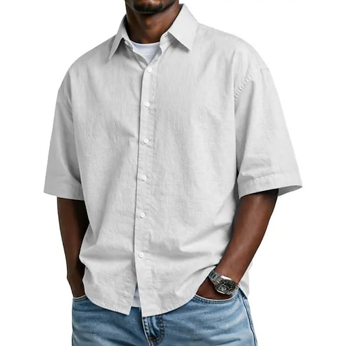 Per uomo Camicia Camicia button-down Camicia 100% cotone lavaggio acido Nero Bianco Rosa Blu marino scuro Blu reale Manica Corta Semplice Bavero Quotidiano All'aperto Bottoni Abbigliamento Streetwear