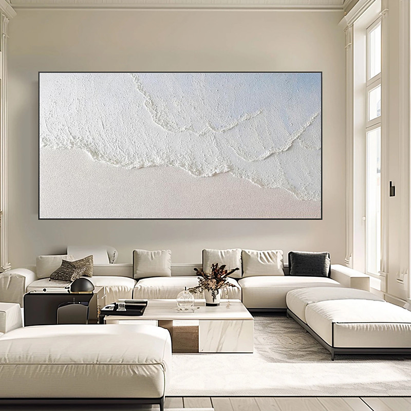 Hand-painted Minimalist Ocean Painting on Canvas 3D Textured Wall Art Earth Tone Seawaves Wall Art Living Room Painting Fashion Room Decor No Frame