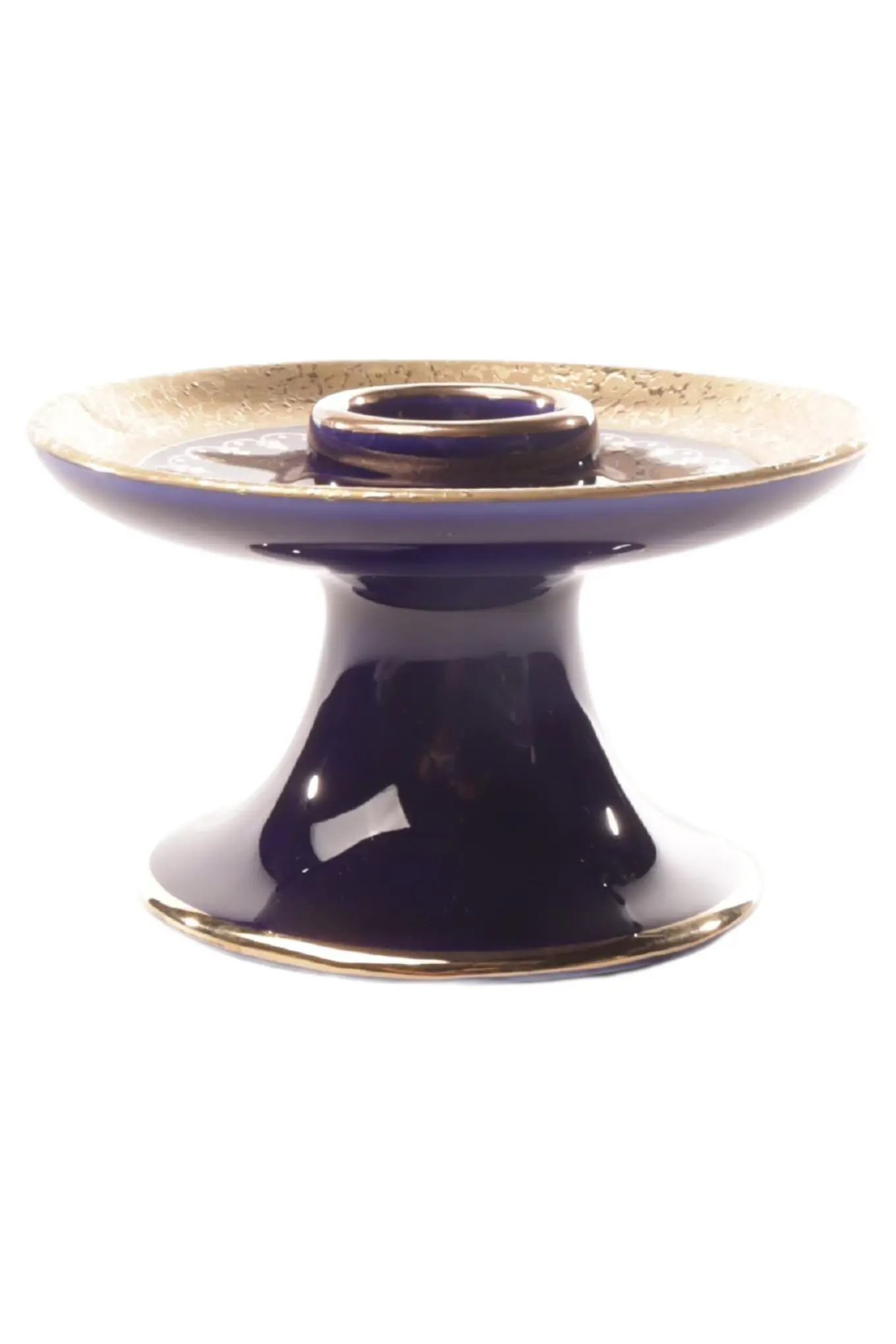 KPM ROYAL BAVARIA Porzellan Kerzenhalter 6 cm Blau Gold rund, 1 Stück, edles Design