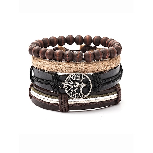 Set di braccialetti multistrato in vera pelle da uomo – bracciale con perline boho a forma di albero della vita, per occasioni casual, feste e viaggi