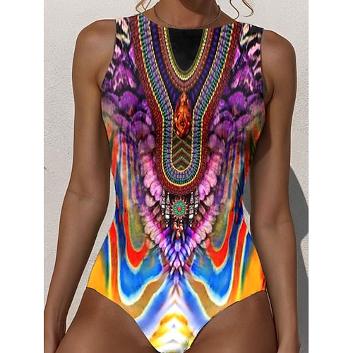 Costume da bagno intero donna snellente boho monokini slip controllo pancia vita alta snellente senza schiena vacanza spiaggia indossare grafica collo rotondo senza maniche
