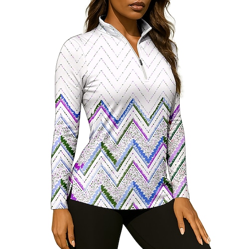 Per donna Geometrico Maglietta Maglietta sportiva Polo da golf Maglia da tennis Manica Lunga Cerniera Floreale UPF50 Resistente ai Raggi UV Alta elasticità Traspirante Tennis Golf Pickleball Collo