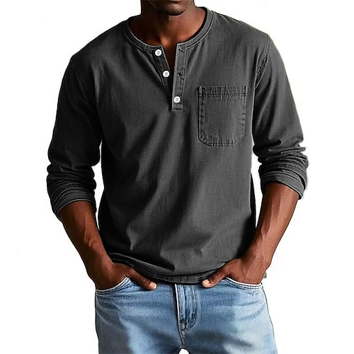 Herren T Shirt Henley Hemd T-Shirt Langarmshirt Langarm Henley Frühling Herbst Einfach Mode Designer Basic Taschen Urlaub Straße Ausgehen Schwarz Rosa Marineblau Top T-Shirt für Herren