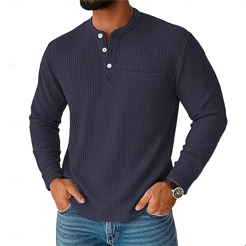 Herren Henley Hemd T-Shirt Langarmshirt Langarm Henley Herbst Winter Retro Mode Designer Mode Jahrgang Urlaub Straße Ausgehen Dunkel Braun Marineblau Schwarz Top T-Shirt für Herren