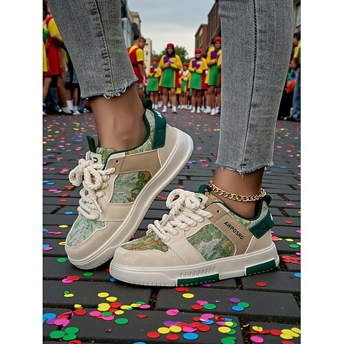 Damen Mardi Gras Freizeit Bunte Sneakers mit gemustertem Design Bequeme Passform Trendige Freizeit Schuhe für Karneval oder Festival Spaß