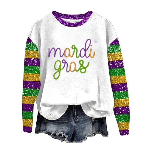 Druck Mardi Gras 2026 T-Shirt Ärmel T-Shirt Grafik für Damen Erwachsene 3D-Druck für Karneval Club Festival