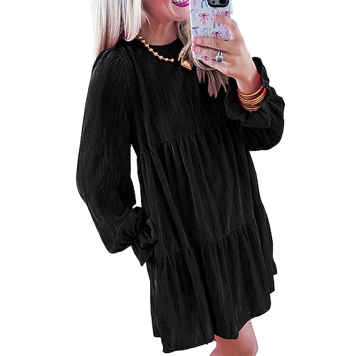 Per donna Mini Abito Abiti in tessuto di lino e policotone Abito in cotone e lino Moderno Quotidiano Vacanza Uscire Vestibilità regolare Semplice Manica Lunga Girocollo Nero Rosa Verde militare