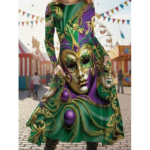 Per donna Abito Midi Vestito Casual Vestito a ruota Elegante Moda Quotidiano All'aperto Weekend Vestibilità regolare Floreale Grafico Manica Lunga Girocollo Blu Giallo Viola Verde Primavera Autunno