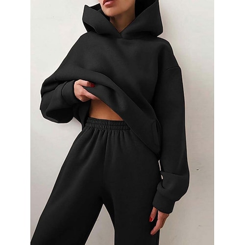 Per donna Moda Streetwear Felpa con Cappuccio Set di Pantaloni Bolero Top Manica Lunga Con Cappuccio Tinta unica All'aperto Casuale Quotidiano Nero Blu Marrone Primavera Vestibilità regolare