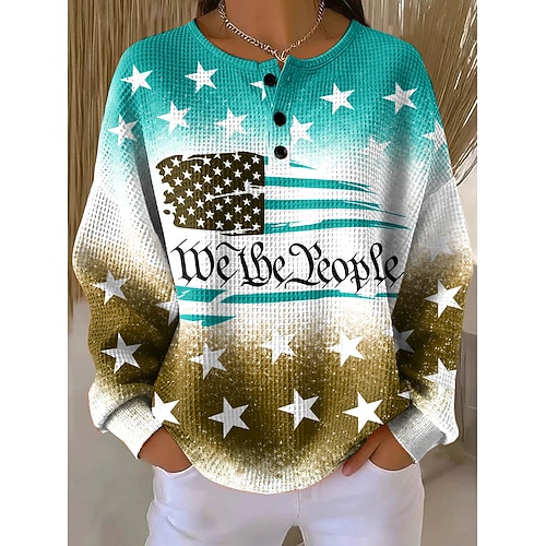 Per donna Felpe con cappuccio Grafico Lettera Moda Casual Stampa Manica Lunga Girocollo Top Regolari Casuale Streetwear Bottoni Blu Giallo Rosso Viola Primavera Autunno Inverno