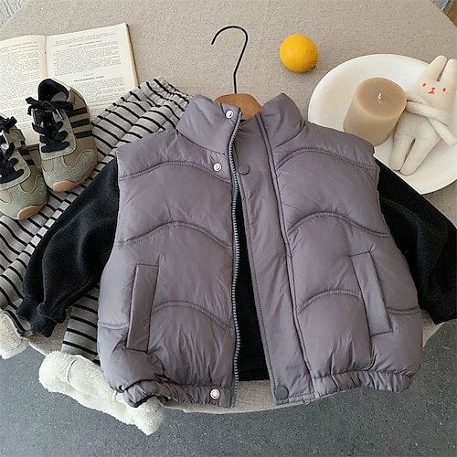 Kinder Jungen Weste Oberbekleidung Einfarbig Ärmellos warm halten Mantel Outdoor Mode Täglich Schwarz Khaki Grau Herbst Winter Ab 4 Jahren