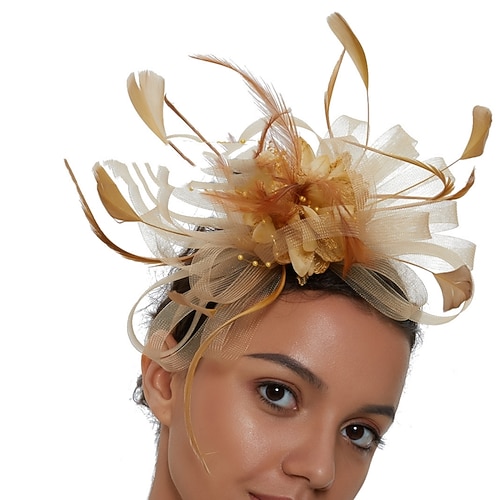 fascinators Tulle Kentucky Derby Corsa di cavalli cocktail Astco reale Retrò Elegante Con Piume Copricapo Copricapo