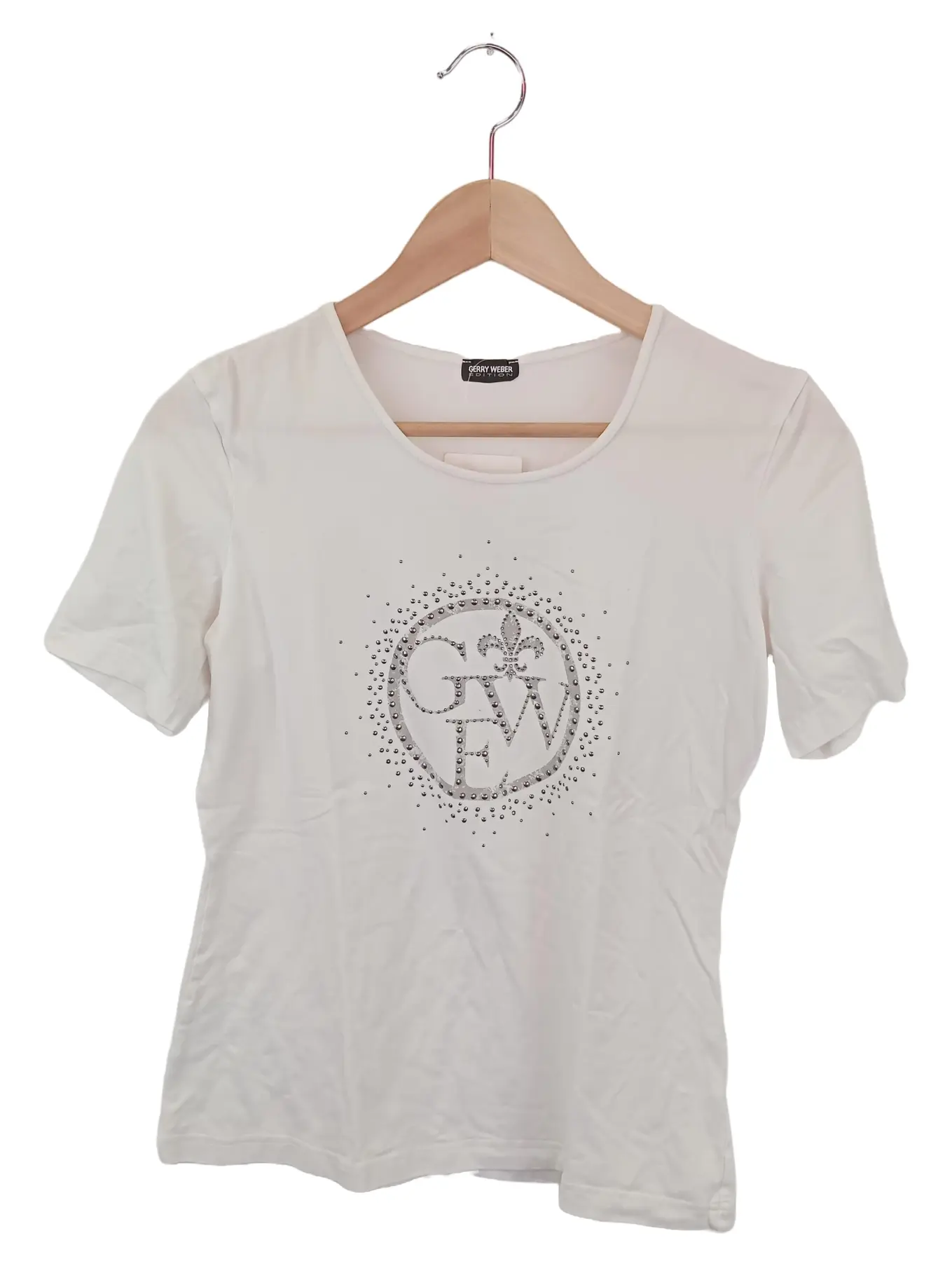 ZEGY Damen Crop-Top im Batik-Look Baumwoll-Shirt T-Shirt 1075 Weiß/Blau