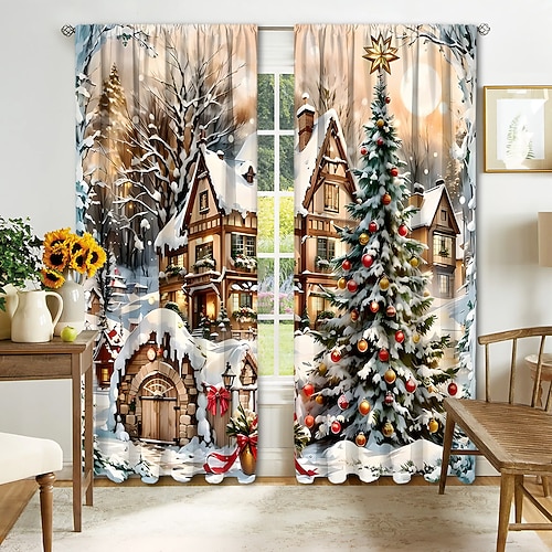 Tende natalizie, stampa digitale 3D, tende per finestre, pannelli decorativi festivi per soggiorno, camera da letto, decorazioni per la casa, set di tende in tessuto morbido