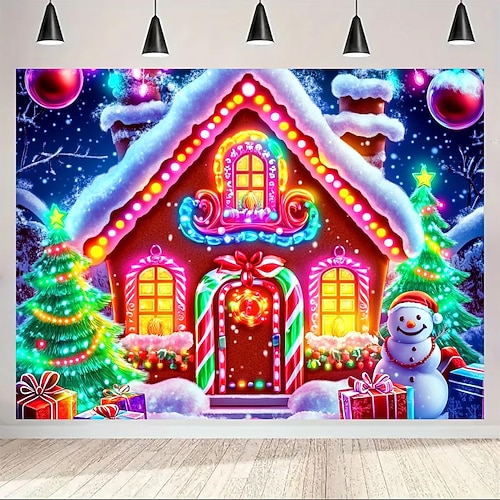 Arazzo natalizio con luce nera, al neon, che si illumina al buio, casa di caramelle, albero, pupazzo di neve, regalo, reattivo ai raggi UV, da appendere alla parete per camera da letto, soggiorno,