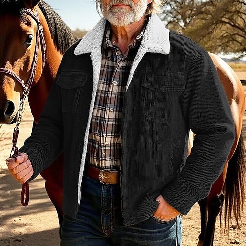 Per uomo Giacca Invernale Giacca in Velluto a Coste Giacca in Pile Giacca Casual Vacanza Quotidiano Calore Termico Tasca Pile Autunno Inverno Semplice Moda Streetwear Bavero Regolare Nero Cachi Caff