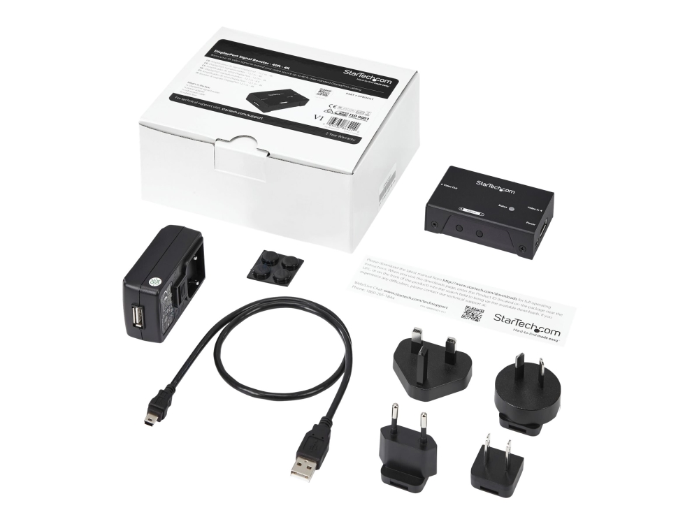 StarTech.com DisplayPort Signalverstärker - DP Extender - 4K 60Hz, 3840 x 2160 Pixel, AV-Repeater, 20 m, Schwarz