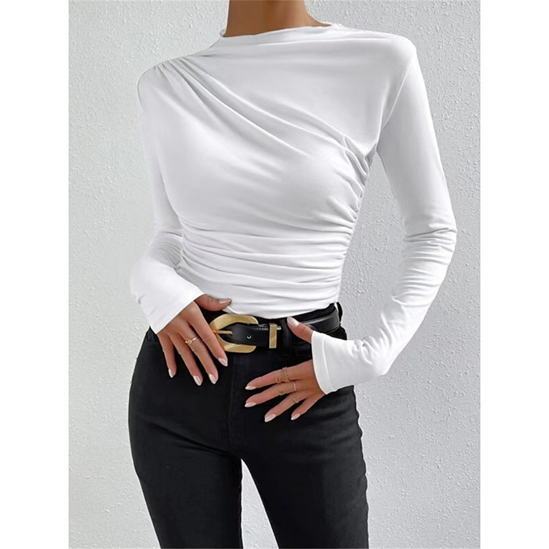 Women's T Shirt Plain Fashion Modern Casual Long Sleeve Turtleneck Regular Tops Daily Weekend Black White Beige Gray Fall Winter