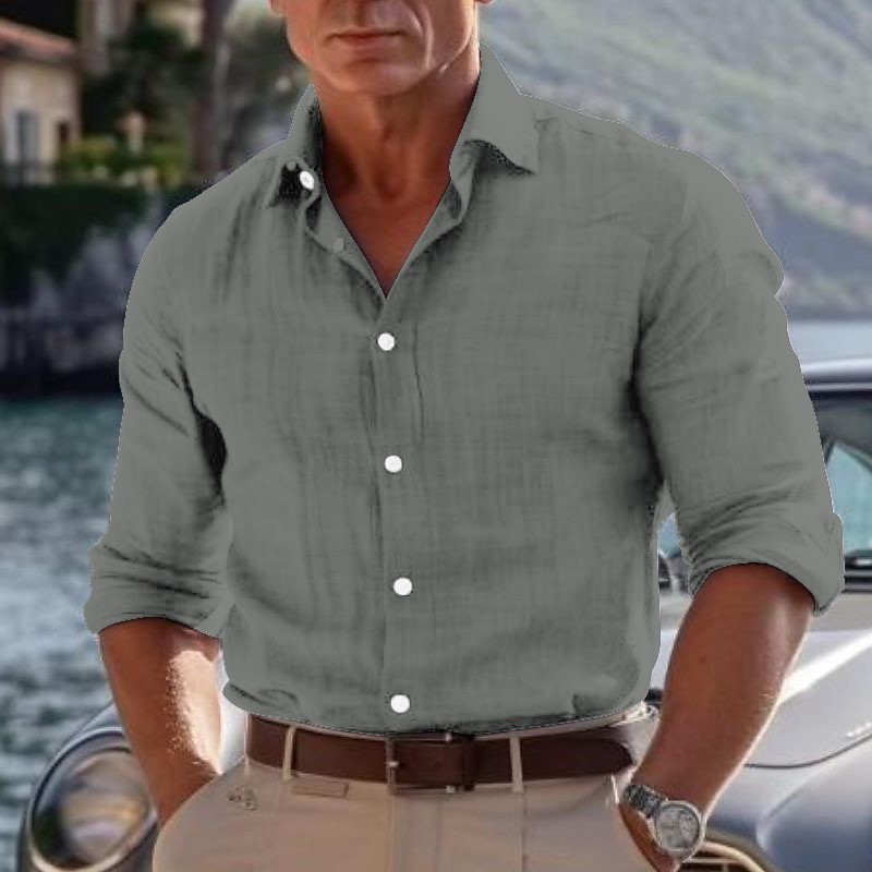 Men's Cotton Shirt Black White khaki Dark Gray Light Blue Long Sleeve Plain Lapel Vacation Clothing Apparel Fashion Casual Comfortable