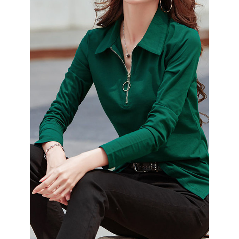 Women's Blouse Plain Stylish Modern Casual Long Sleeve Shirt Collar Regular Tops Daily Zipper Black Yellow Pink Green Spring Fall Winter