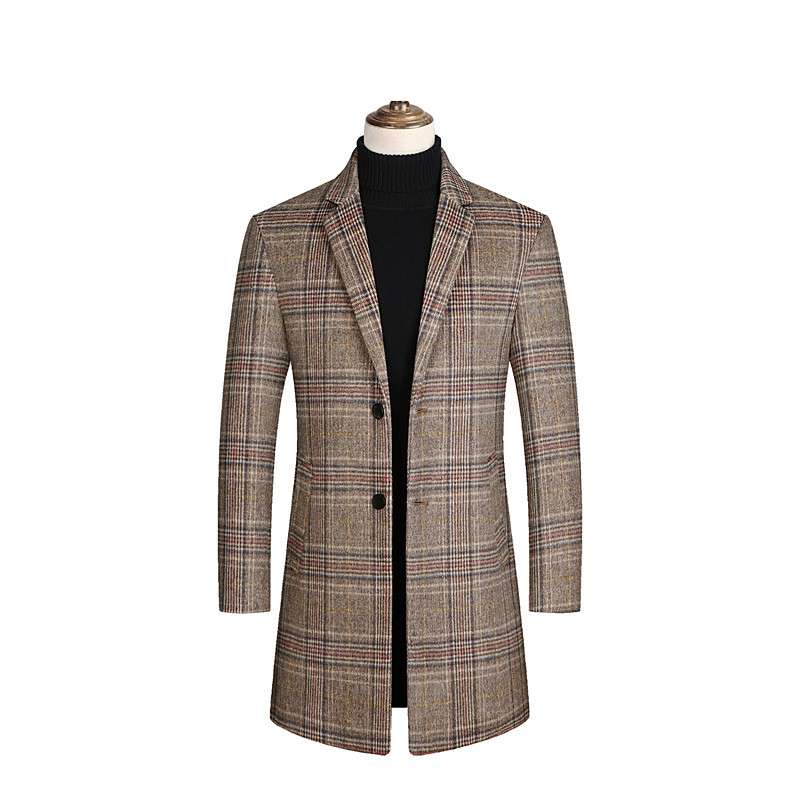 Men's Wool Coat Overcoat Trench Coat Long Trench Coat Daily Vacation Fall Winter Polyester Thermal Warm Windproof Outerwear Clothing Apparel Fashion Classic Plaid Pocket Lapel Single Breasted