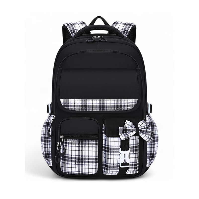 Children's Waterproof Large Capacity School Backpack – Lightweight Plaid Design, Comfortable Shoulder Straps, Ideal for Girls' Daily School, Travel and Outdoor Activities