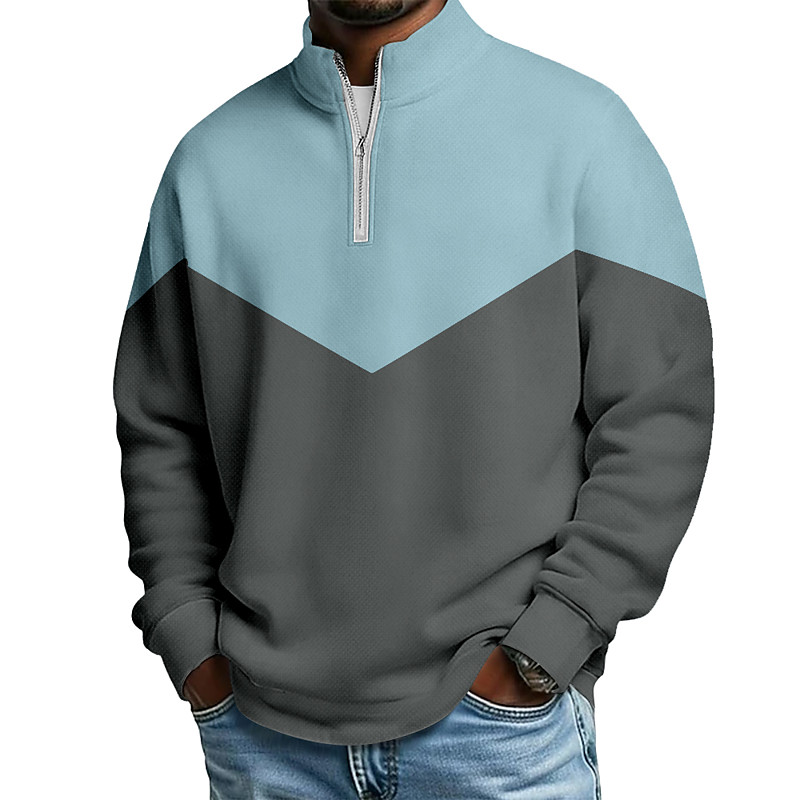 Men's Geometric Zip Polo Shirts Golf Shirt Long Sleeve Polo Shirts Collared Shirts Business Casual Vacation Wear Formal Wear Festival Wear 3D Print Quarter Zip Polo Yellow Red Blue