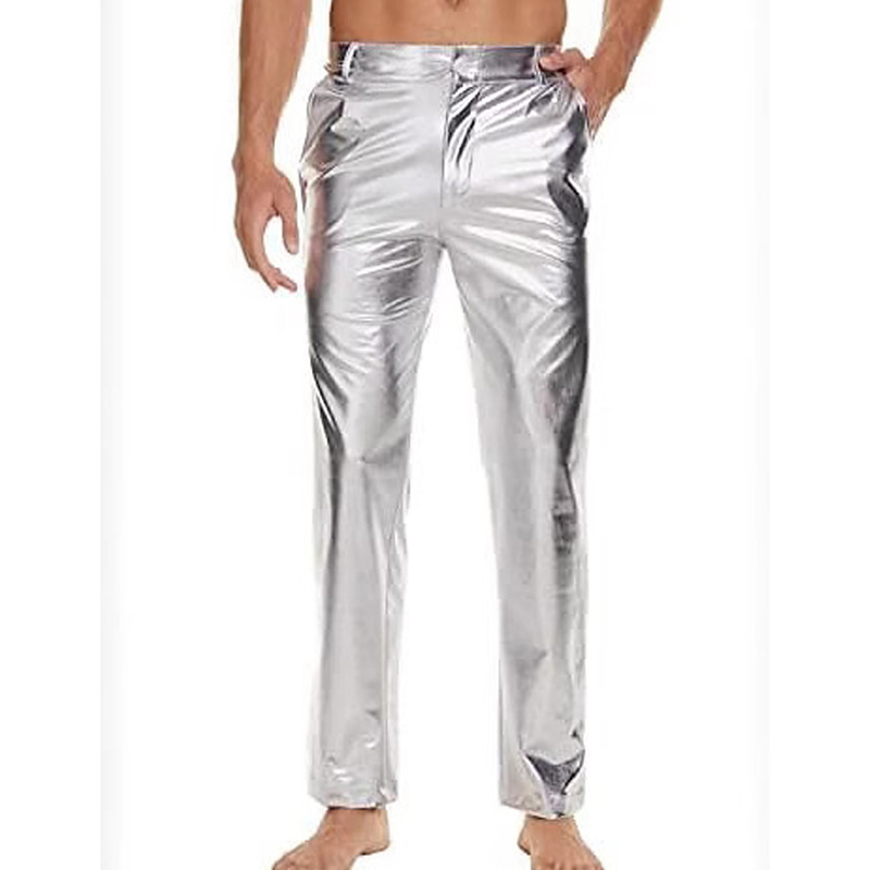 Men's Trousers Dress Pants Satin Pants Disco Pants Prom Pants Pocket Plain Breathable Full Length Wedding Party Stage Fashion Streetwear Black White Stretchy