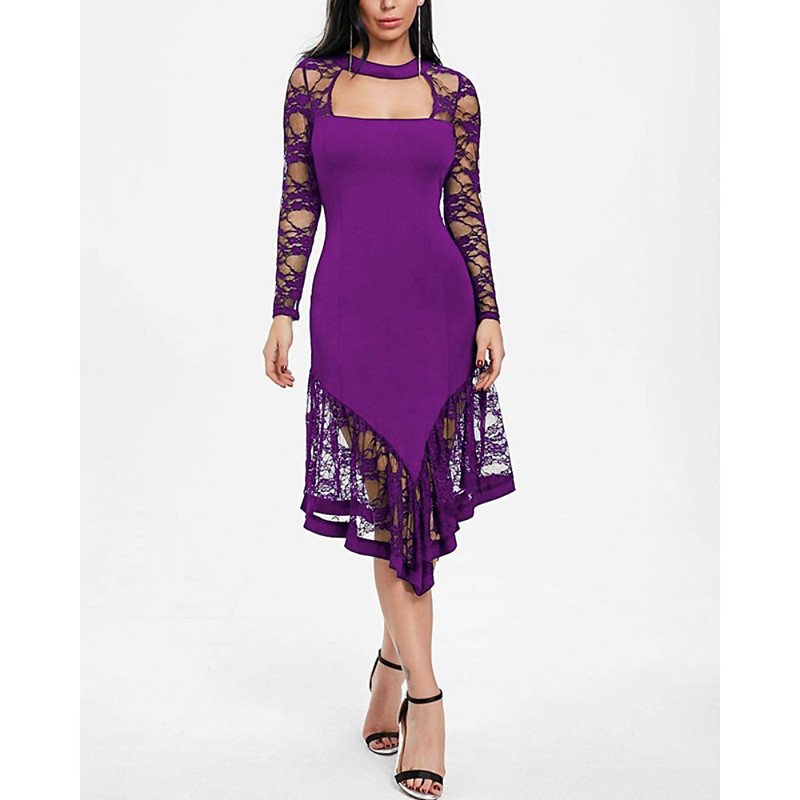 Women's Midi Dress Black Dress Lace Dress Prom Dress Party Dress Elegant Fashion Modern Evening Party Party Special Occasion Regular Fit Plain Long Sleeve Crew Neck Blue Black Red Purple Spring Fall
