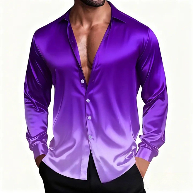 Men's Shirt Satin Shirt Dress Shirt Button Up Shirt Prom Shirt Gradient Wedding Formal Light Pink Light Blue Black Blue Long Sleeve Turndown All Seasons Clothing Apparel