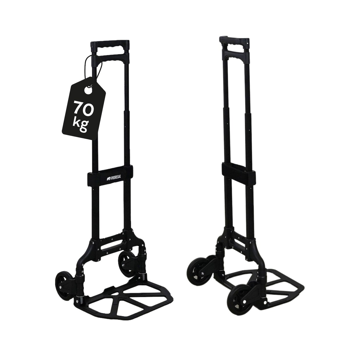 Proregal Klappbare Profi-Sackkarre ELEPHANT | HxBxT 110x39x42cm | Traglast 70kg | Aluminiumrahmen, ergonomische Griffe, TRR Fachgummiräder | Schwarz