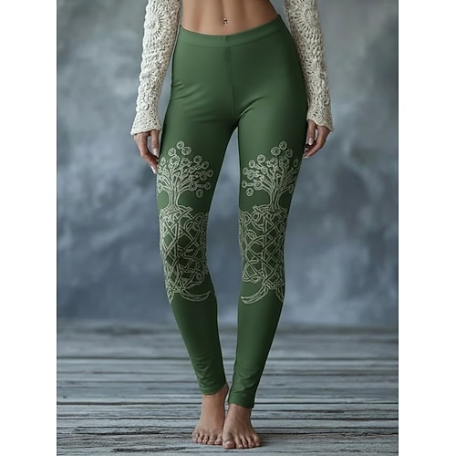 Damen-Leggings im Wikinger-Stil, kuschelig, für Urlaub, Vintage-Look, Ethno-Stil, lange Länge, hoher Bund, Grafikprint, bequem, dehnbar, für Freizeit, Alltag, Frühling, Herbst, schmale Passform
