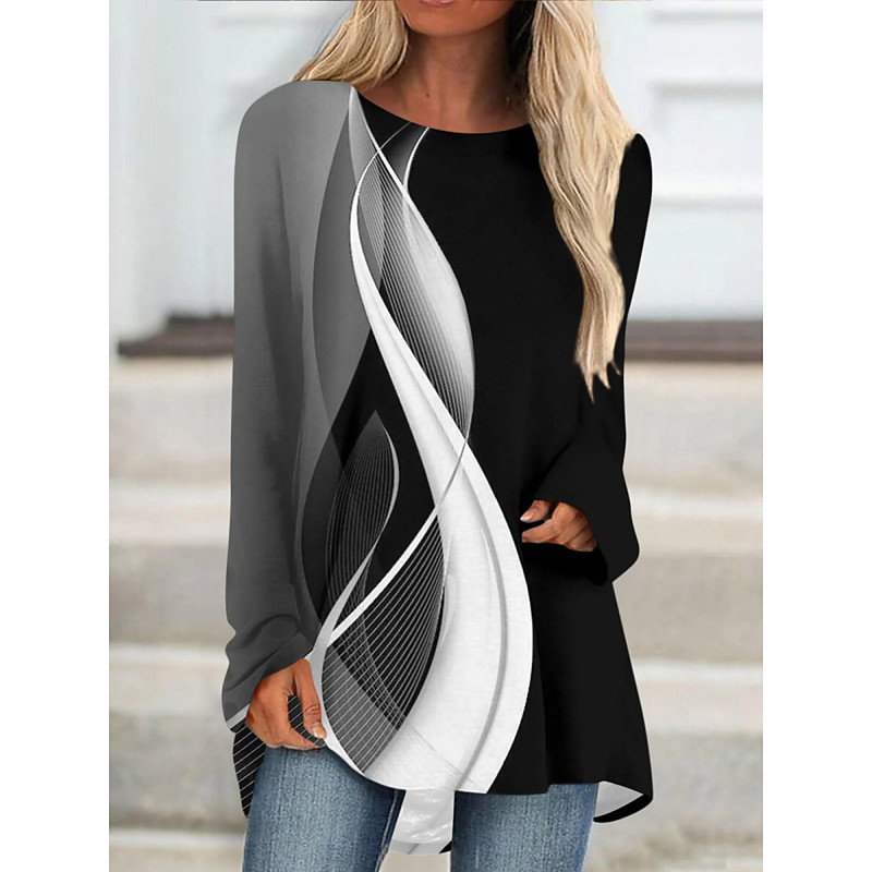 Women's T Shirt Geometric Fashion Classic Casual Long Sleeve Round Neck Regular Tops Daily Weekend Vacation Wear Print Gray Summer Spring Fall