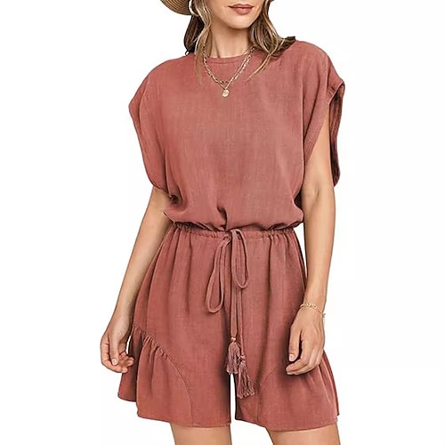 Per donna Normale Pantaloni in lino e cotone Streetwear Tinta unica Senza Maniche Girocollo Coulisse Streetwear Quotidiano Vestibilità regolare Nero Rosso Blu Estate