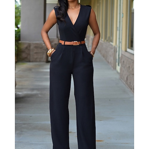 Per donna Normale Pagliaccetto Casual Tinta unica Senza Maniche Scollo a V Tasca Streetwear Quotidiano Vestibilità regolare Nero Verde chiaro Blu Estate