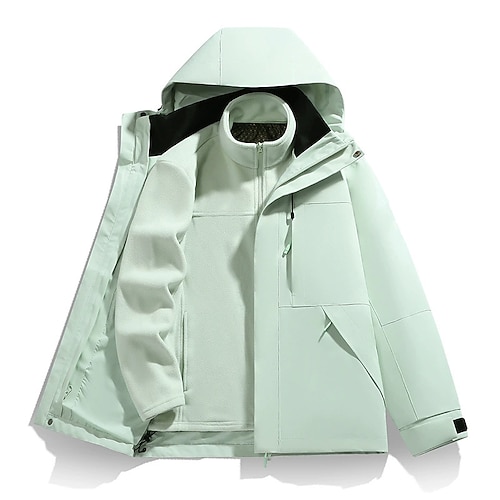 Per donna Giacca impermeabile 3 in 1 Impermeabile Antivento Cerniera Tasca Casual Tinta unica All'aperto Vacanza Streetwear Abbigliamento quotidiano Cerniera Regolare Con Cappuccio Vestibilit