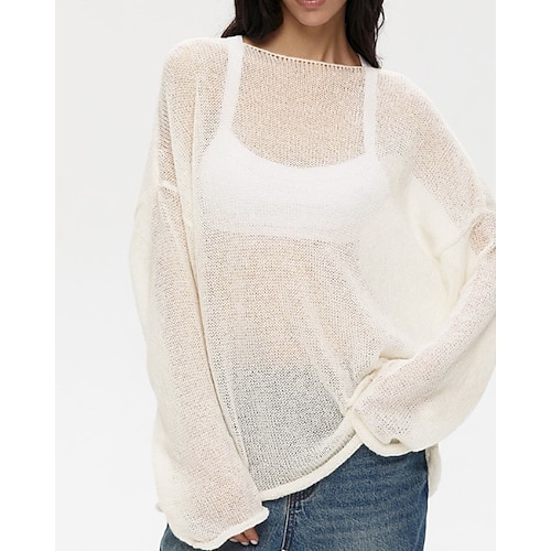 Per donna Felpa Maglione Streetwear Casual Tinta unica Girocollo Lavorato a maglia Manica Lunga Top Regolari Maglia Ferie Uscire Weekend Bianco Rosa Estate Primavera