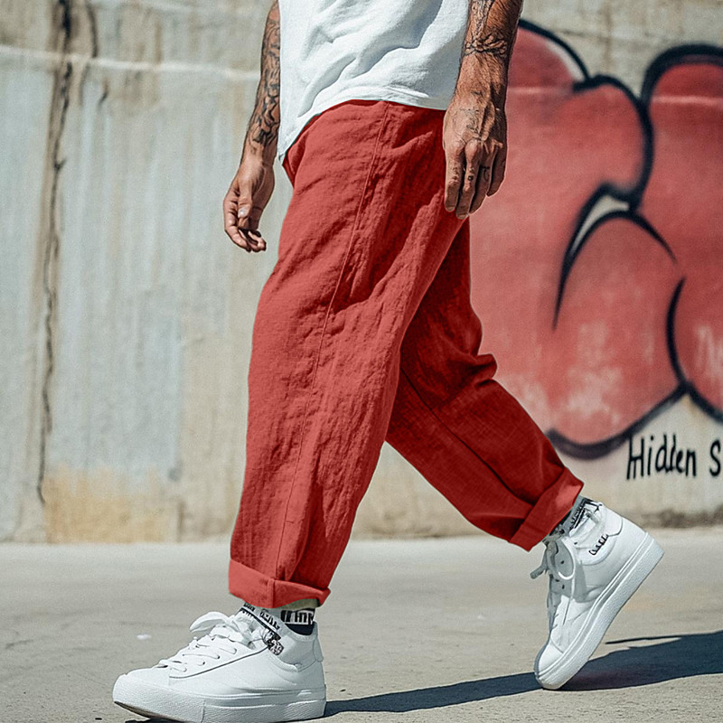 Men's Cotton Linen Pants Trousers Summer Pants Baggy Pants Beach Pants Pocket Solid Color Comfort Breathable Daily Outdoor Beach Vacation Fashion Black White Inelastic