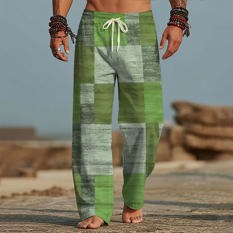 Men's Geometric Color Block Patchwork Trousers Baggy Pants Casual Pants Mid Waist Fashion Home Outdoor Vacation Elastic Drawstring Waist Linen-Like Pants with Pockets Summer Spring 3D Print Blue