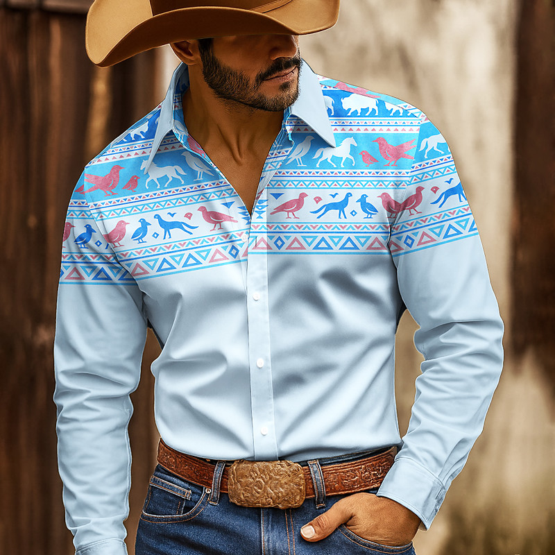 Men's Geometric Indian Culture Navajo Pattern Shirt Western Shirt Button Up Shirt Long Sleeve Vintage Retro Outdoor Casual WorkWear Spring Fall Turndown 3D Print Collared Shirts Dark Red Blue Green