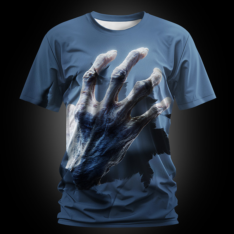 Halloween Men's Optical Illusion 3D Hand T Shirt Short Sleeve T shirt 3D Print Crew Neck Shirt Exaggerated Designer Horror Party Street Holiday Blue Brown Green Summer Spring All Seasons Clothing