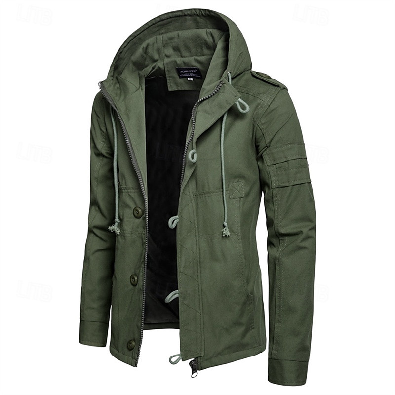 Men's Peacoat Trench Coat Vacation Daily Fall Winter Cotton Blend Thermal Warm Outerwear Clothing Apparel Fashion Classic Plain Pocket Hooded Zipper