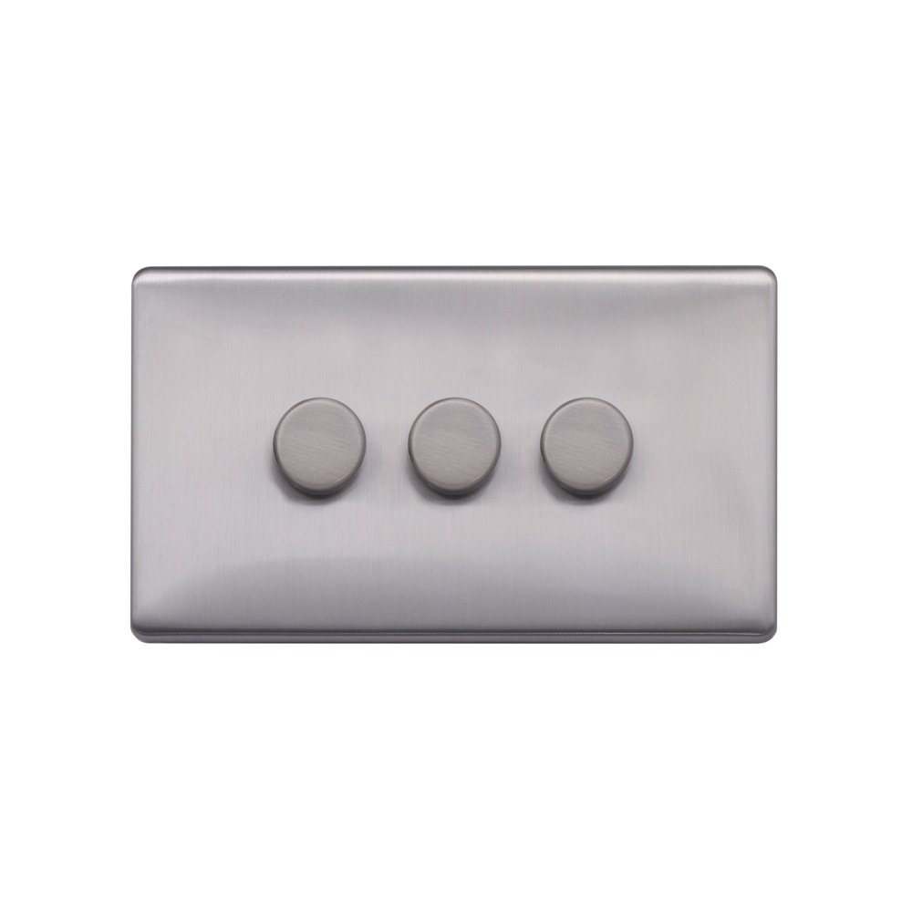 Lieber Brushed Chrome 3 Gang 2 -Way Intelligent Dimmer 100W LED (250w Halogen/Incandescent) - Size: 146mm x 86mm x 2.95 mm